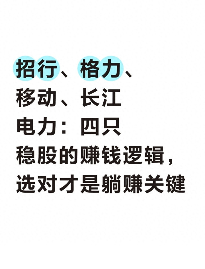 A股的稳股从不是“无脑买就能赚”的标的,每只股票的背后都有自己的盈利逻辑和风险点。长江电力靠资源垄断躺赚分红,中国移动靠数字化转型实现增长,招商银行靠零售银行打造护城河,格力电器靠行业周期和转型谋发展,它们分别对应着不同的投资需求。